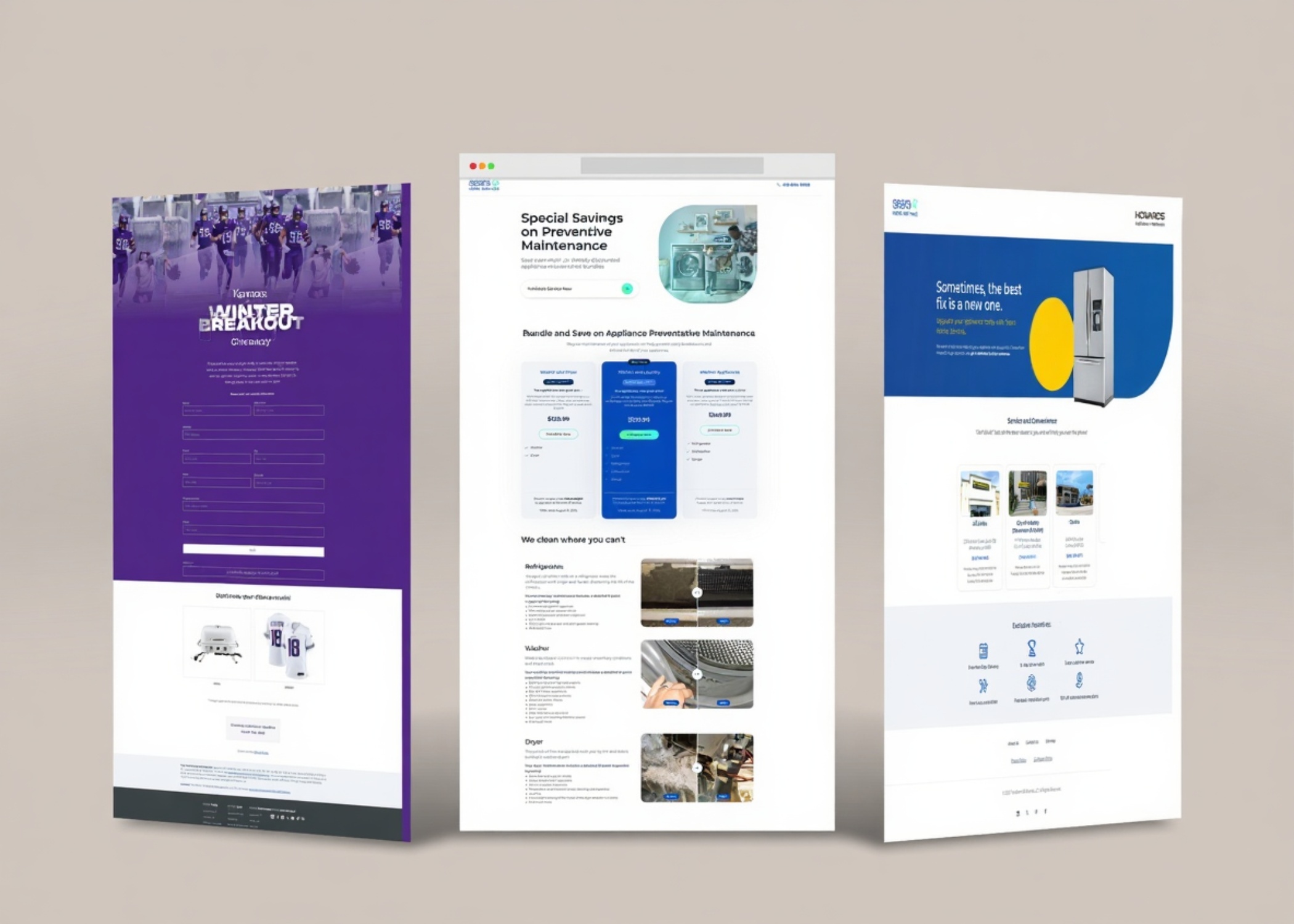 Build Webflow landing pages for Sears Home Services’ promotional campaigns and institutional content.